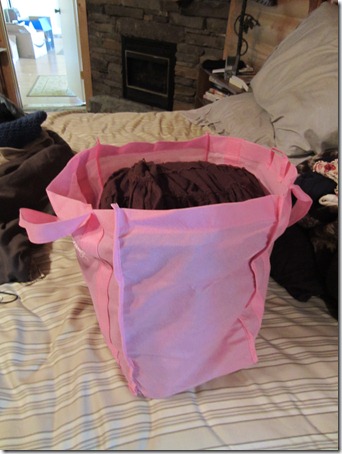 I also sorted through all of my undergarments. Anything that had holes, stains, or no longer fit I tossed. A few things I packed away…again because they don’t work in my current pregnant state. Because I don’t have a dresser, I use shoe boxes to organize my undergarments. Socks and stockings go in one, underwear and slips in the other. All of my bathing suits I conveniently keep in a wet bag.